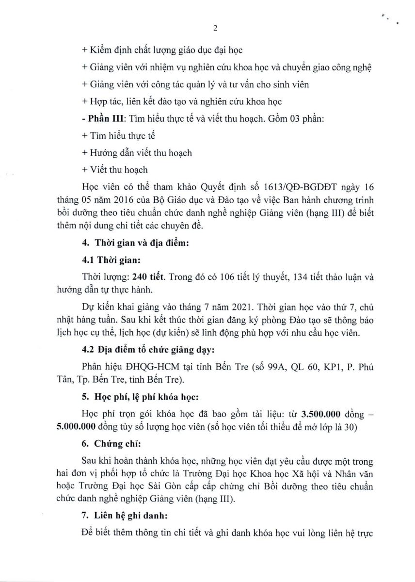 Thông báo: Chiêu sinh Lớp bồi dưỡng theo tiêu chuẩn chức danh nghề nghiệp Giảng viên (hạng III)
