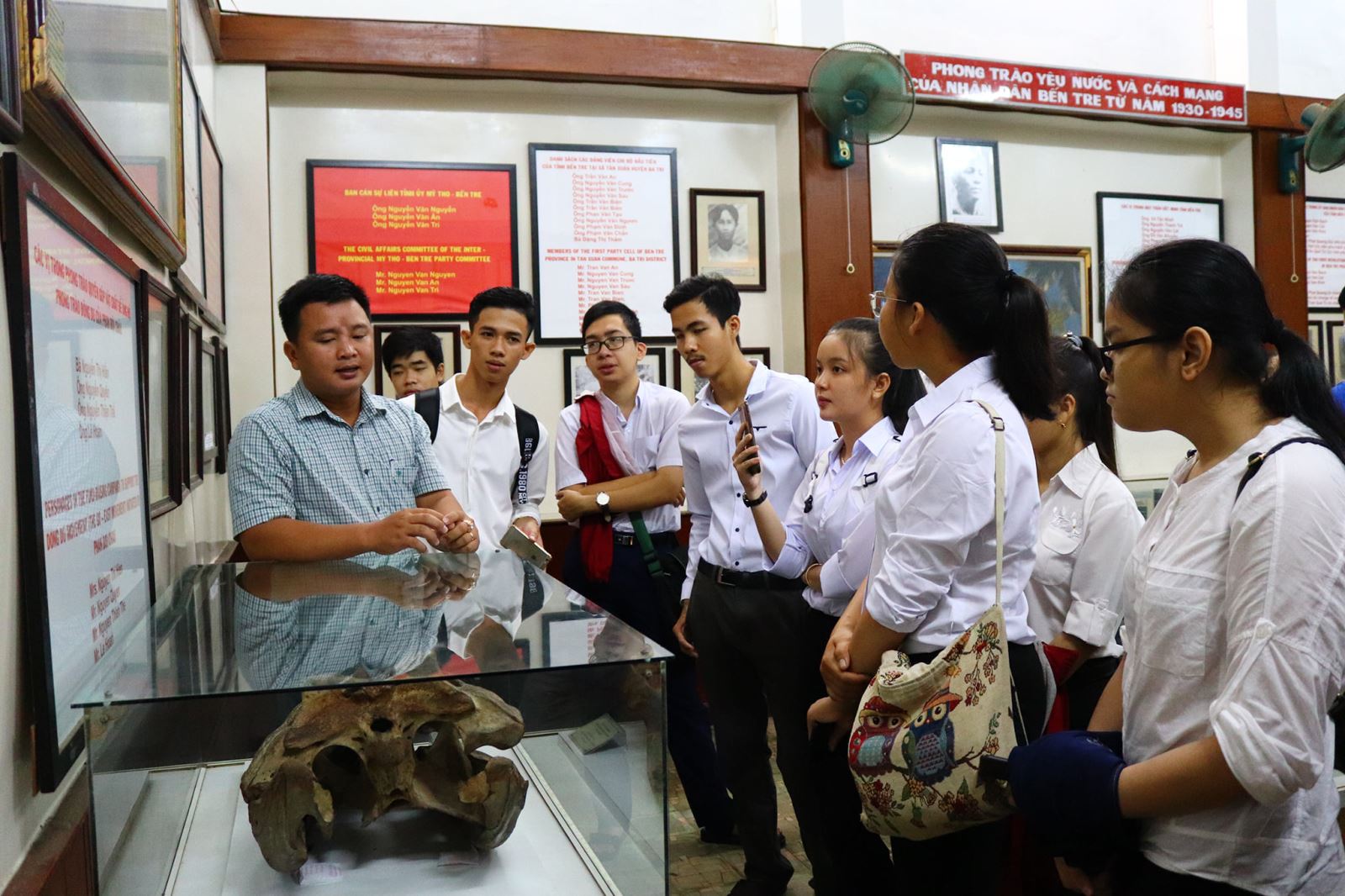 Các bạn Tân sinh viên nghe thuyết minh tại Bảo tàng Bến Tre