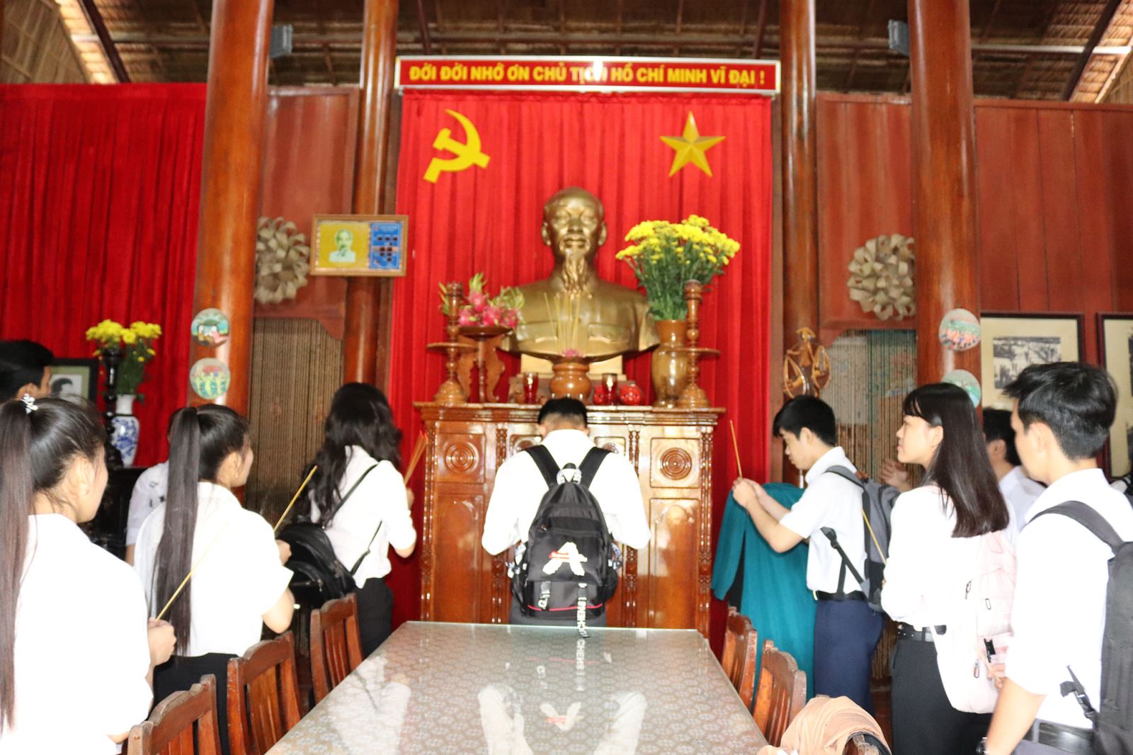 Các bạn Tân sinh viên trang nghiêm thắp hương bàn thờ Chủ tịch Hồ Chí Minh