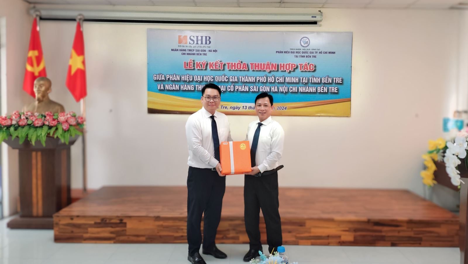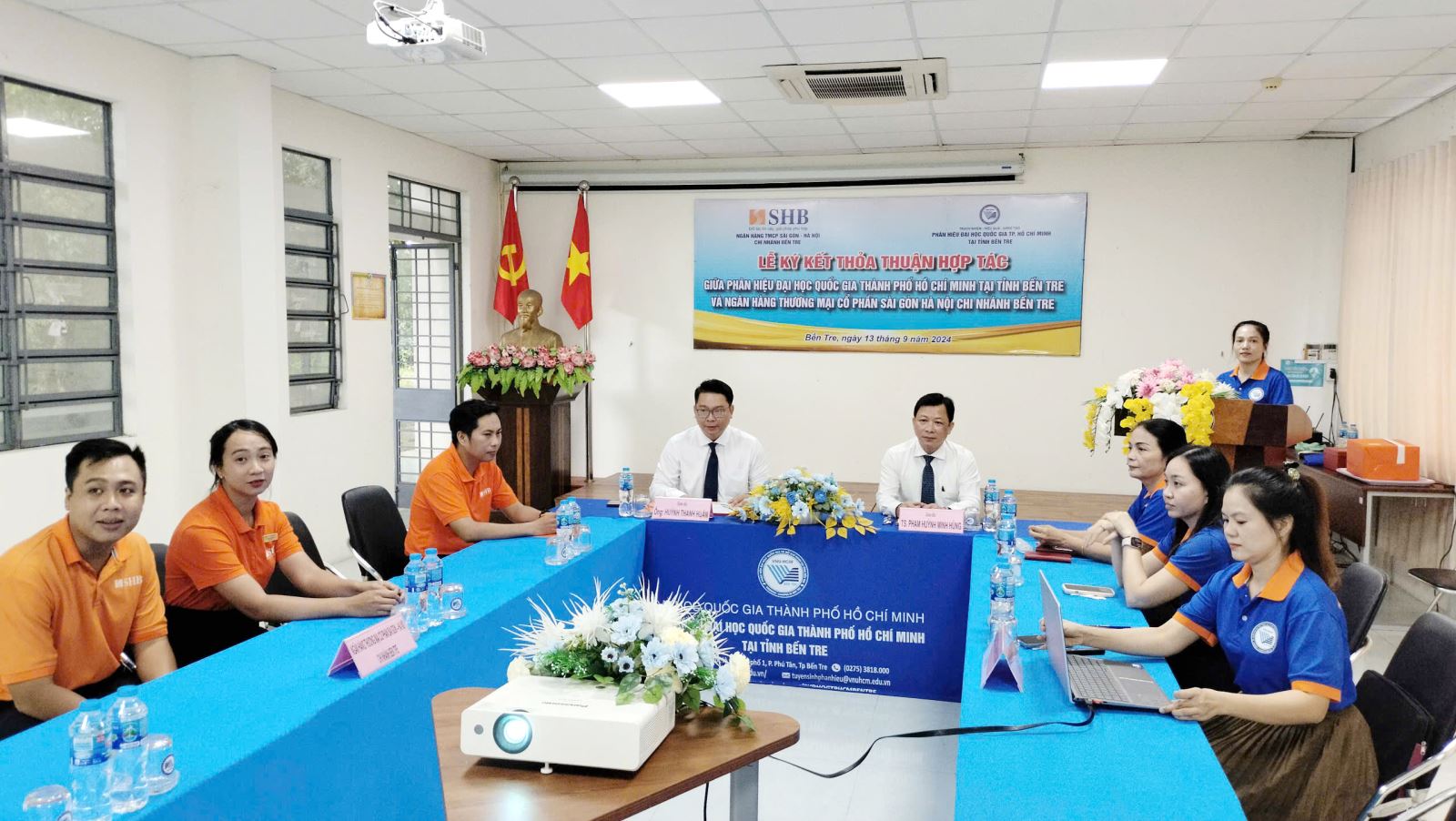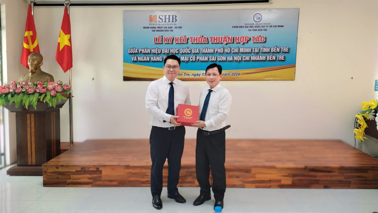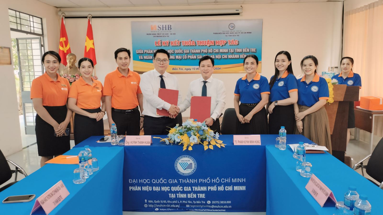 - Vào ngày 13/9/2024, tại Phân hiệu Đại học Quốc gia Thành phố Hồ Chí Minh tại tỉnh Bến Tre (Phân hiệu ĐHQG-HCM) diễn ra Lễ Ký thỏa thuận hợp tác giữa Phân hiệu ĐHQG-HCM và Ngân hàng TMCP Sài Gòn - Hà Nội, Chi nhánh Bến Tre trong công tác hợp tác khai thác các nguồn lực và phát huy thế mạnh của mỗi bên trong việc thực hiện các mục tiêu phát triển của Phân hiệu ĐHQG-HCM và Ngân hàng TMCP Sài Gòn - Hà Nội, Chi nhánh Bến Tre