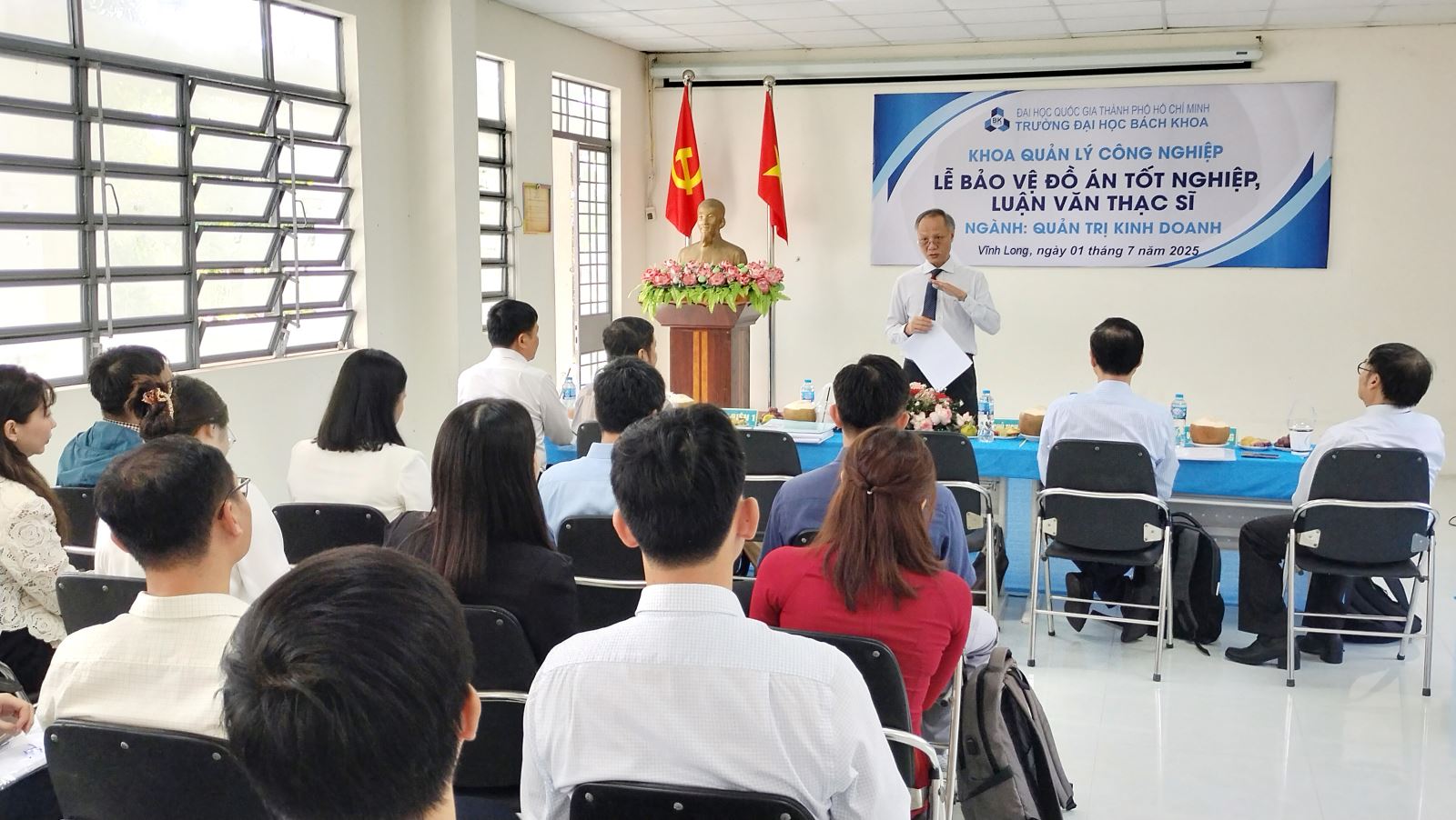 Ngày 01/07/2025, Phân hiệu ĐHQG-HCM tại tỉnh Bến Tre (Phân hiệu ĐHQG-HCM) phối hợp với Khoa Quản lý Công nghiệp – Trường Đại học Bách Khoa (ĐHQG-HCM) tổ chức Lễ bảo vệ đồ án tốt nghiệp và luận văn thạc sĩ cho 12 học viên cao học ngành Quản trị kinh doanh thuộc các khóa 2021, 2022 và 2023.
